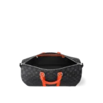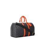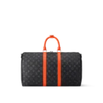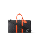 This Keepall Bandoulière 45 bag in Monogram Éclipse canvas is accented with side bands, top handles, and brightly colored leather trim. This cabin-sized model, lined with black textile, features an interior zippered pocket. The wide, adjustable and removable shoulder strap and top handles offer multiple carrying options.